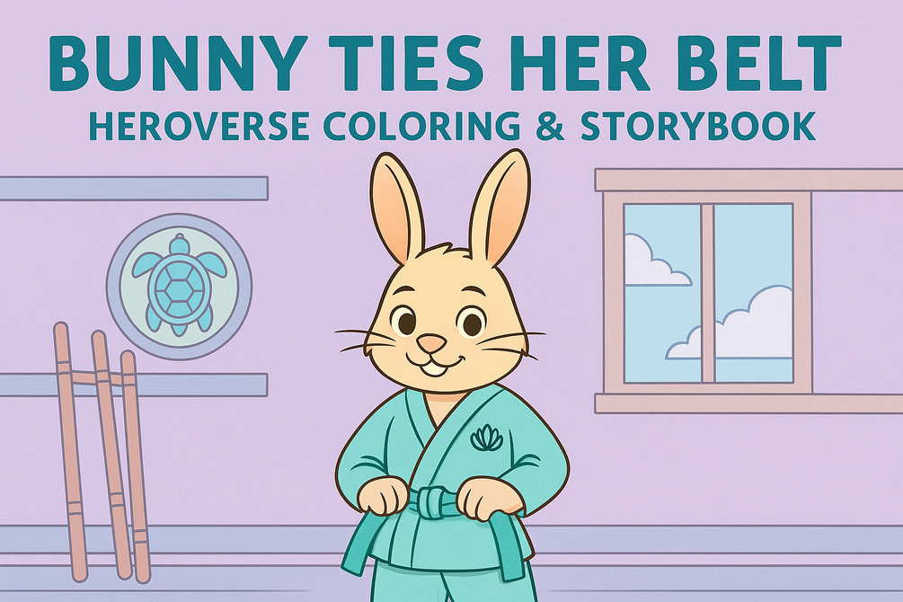 13 pages of clean, printable coloring fun — featuring Bunny’s martial arts poses, Heroverse dojo settings, and belt-tying scenes. Great for ages 4–9 and martial arts classrooms.
